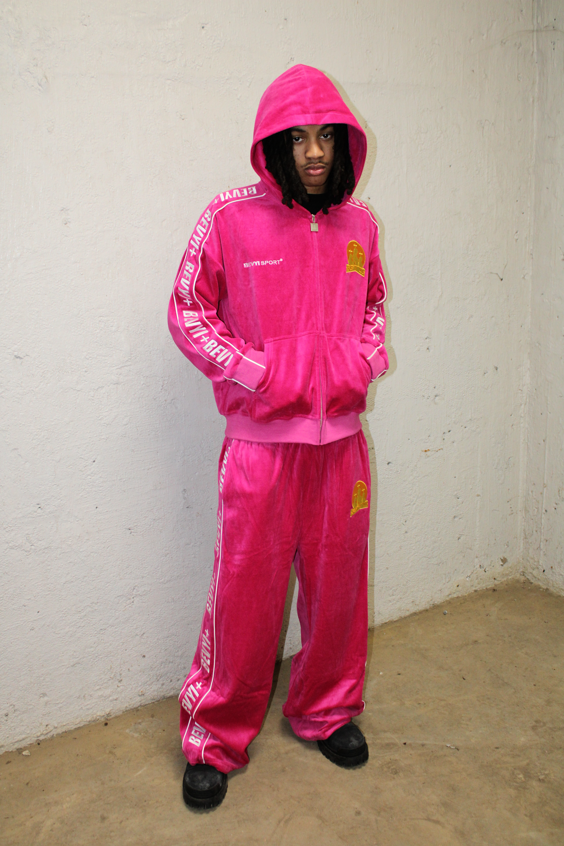 • Embroidered Bevyi crest + Bevyi Sport logo